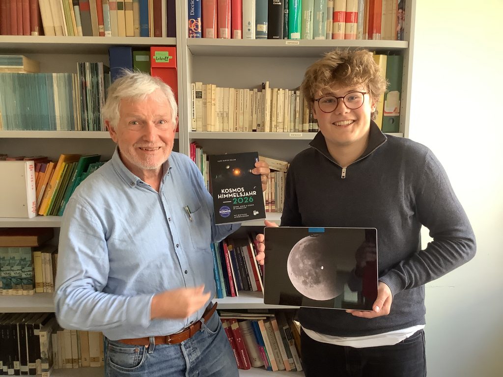Das Projekt „MI(N)T KI zu den Sternen“ bietet seit diesem Jahr Oberstufenschülern des Annette-von-Droste-Hülshof-Gymnasiums in Münster die Chance, selbst astronomische Beobachtungen durchzuführen. Herr Schneider und Herr Deittert leiten den MINT-Projektkurs, unterstützt von der AIM-Projektgruppe Münster.